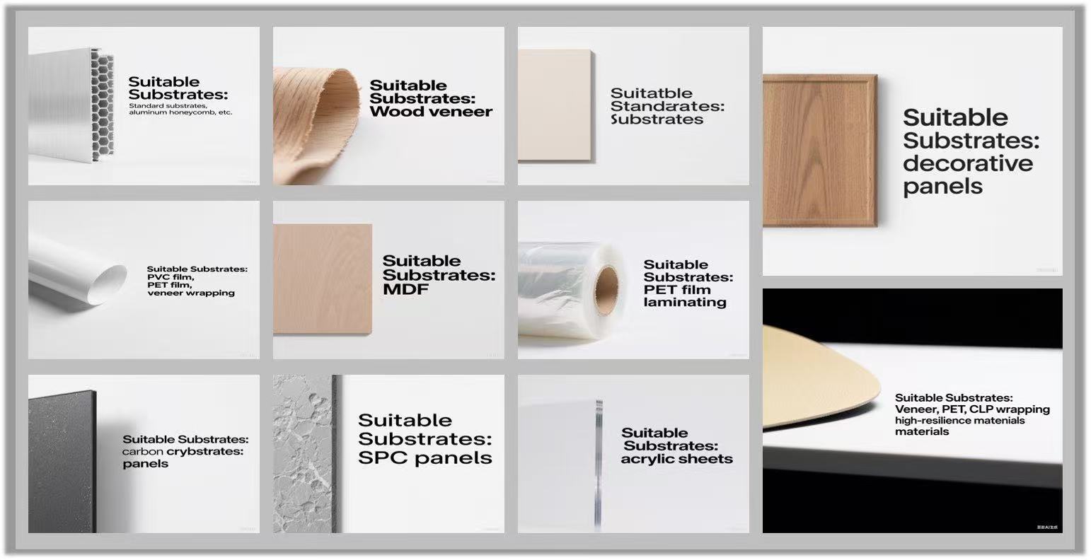 • Adhesion to SPC (Stone Plastic Composite) and carbon crystal panels in high-end applications