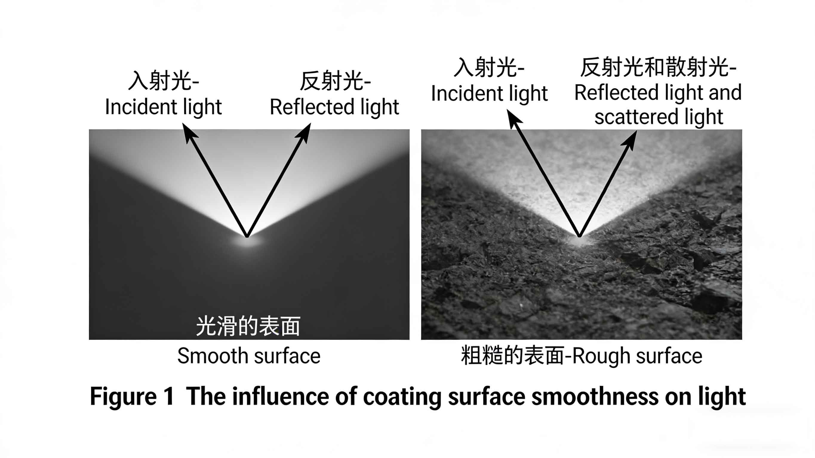So, what is matting? Its core lies in creating a microscopically rough surface on the coating film. When light strikes this uneven surface, diffuse reflection occurs, reducing specular reflection and scattering light in various directions, ultimately achieving a matte effect. This phenomenon of light reflection on object surfaces is illustrated in Figure 1. Matting agents function as a physical method to alter the gloss of coatings. As water evaporates during the drying process, the matting agent migrates to the surface, creating microscopic irregularities that increase surface roughness and thereby diminish specular reflection.